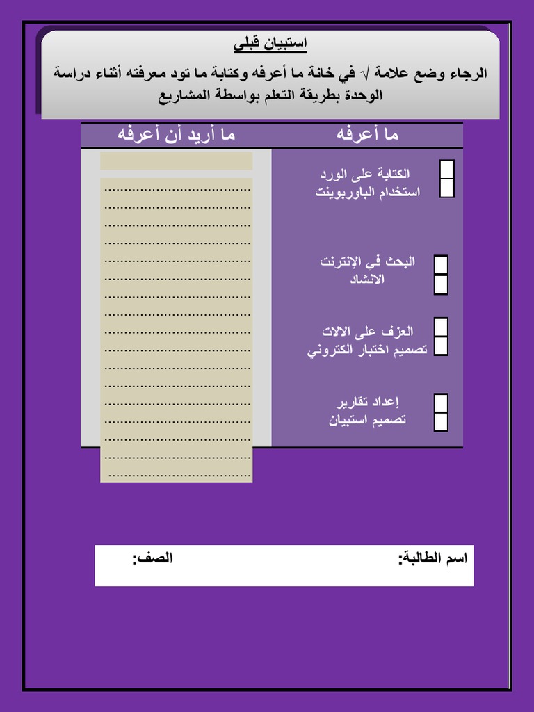 استمارة متابعة الطالبات الضعيفات 1439 هـ. فتح أستمارة المشاريع الصغيرة لغرض تعديل البيانات. استمارة تقييم مشروعات الطلاب و التي تستخدم أثناء تقييم استراتيجية التعلم بالمشارع.